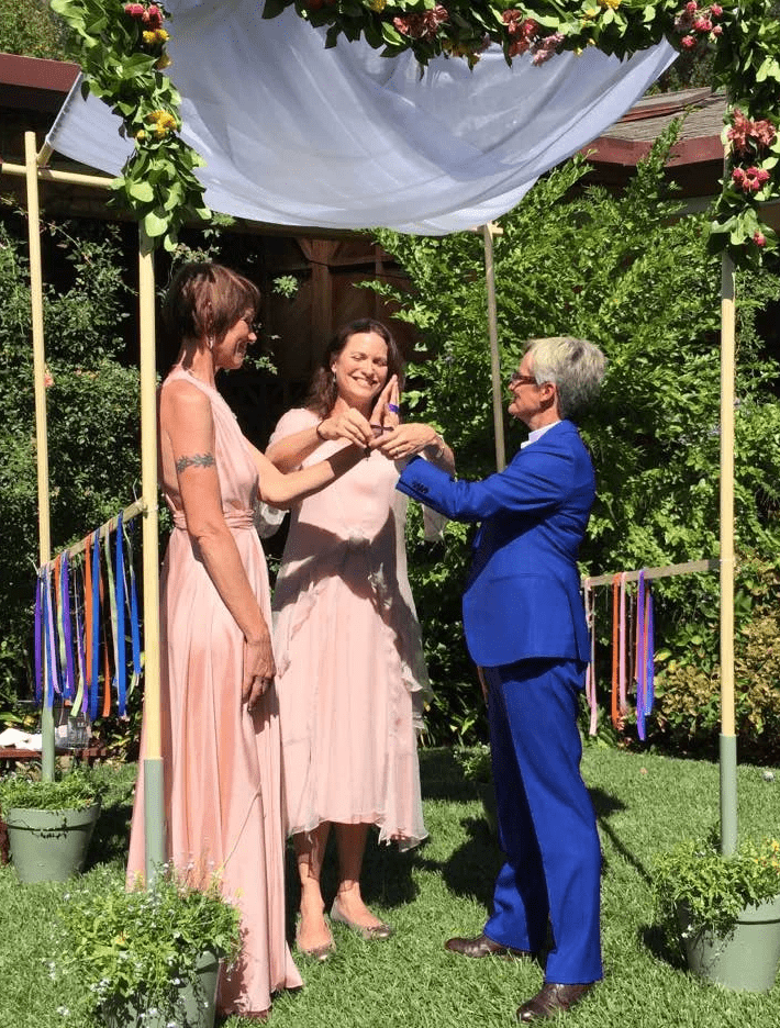 I see weddings as the most powerful—and perhaps only—collective ritual we have in secular society. They can be portals to new lives, stronger community, and clearer values and life direction. The couples I work with typically are looking for a non-religious, inclusive experience that makes everyone—from religiously observant cousins to atheists—feel welcome and comfortable. I’ve performed heterosexual and same-sex weddings, pagan weddings, and I've co-officiated with rabbis and ministers.